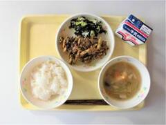 白ご飯、牛乳、わかめスープ、ツナそぼろ、はるさめサラダ でした。