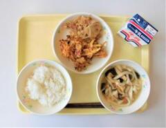 白ご飯、牛乳、五目うどん、かき揚げ、おかかあえ