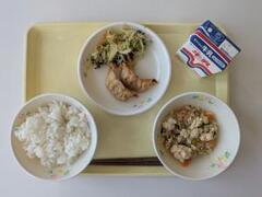 白ご飯、牛乳、わかめスープ、ツナそぼろ、はるさめサラダ でした。
