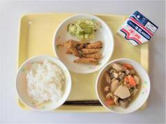白ご飯、牛乳、いもたき、イワシの梅揚げ、あまずあえ