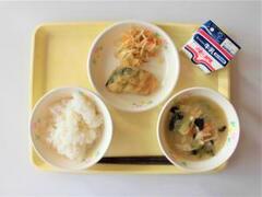 白ご飯、牛乳、あつあげのみそ炒め、きびなごカリカリフライ、すのもの でした。