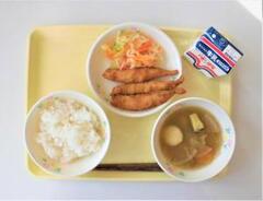 白ご飯、牛乳、けんちん汁、メヒカリのカレーフライ、おかかあえ