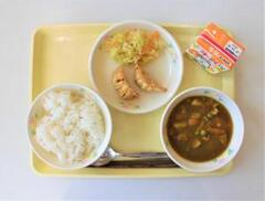 白ご飯、牛乳、カレー、ツナオムレツ、レモンあえ でした。