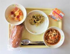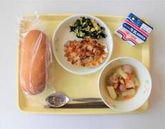 コッペパン、牛乳、ポトフ、豆腐のミートグラタン、わかめサラダ