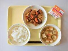 白ご飯、牛乳、すまし汁、酢豚
