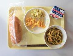 小型パン、牛乳、やきそば、ささみチーズフライ、レモンあえ