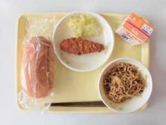 小型パン、牛乳、やきそば、ささみチーズフライ、レモンあえ