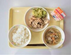 白ご飯、牛乳、沢煮椀、卯の花煮、甘酢あえ